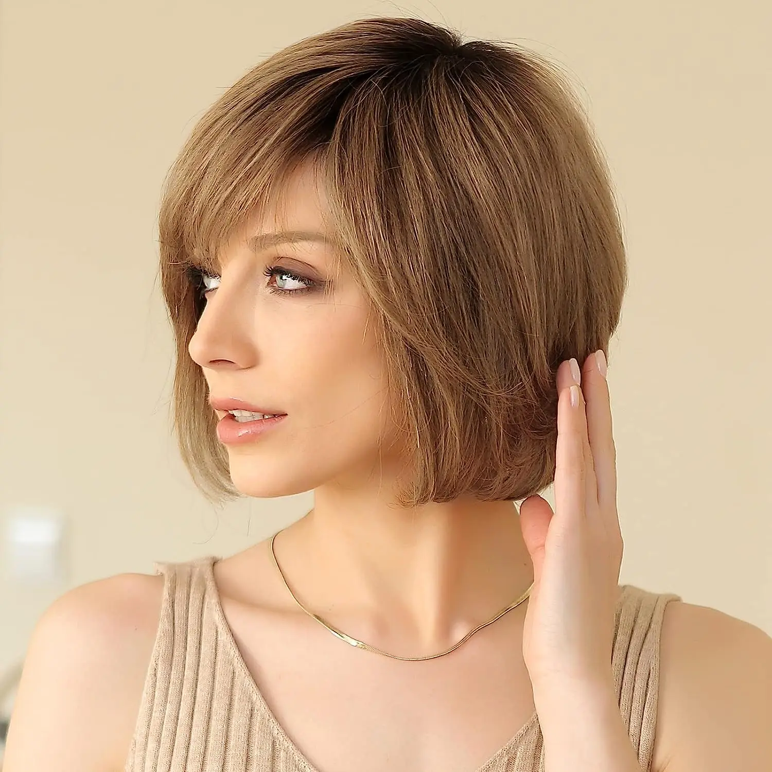 باروكة الشعر القصيرة ذات الطبقات المموجة، المصنوعة من 100% شعر طبيعي ريمي عالي الجودة. صُممت هذه الباروكة بدانتيل أمامي شفاف بتقنية HD لمنحك مظهراً طبيعياً للغاية، مع ملمس ناعم وانسيابي. تتميز بتصميم عصري يمنحك كثافة وحيوية، | |